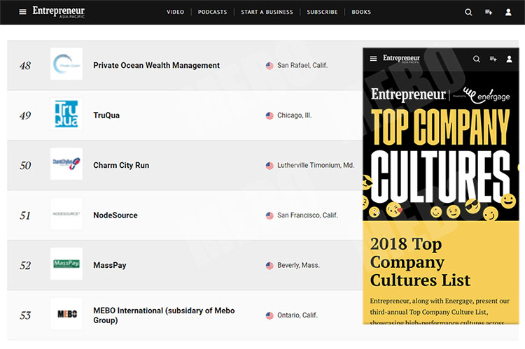 克日,美国《企业家》杂志及“员工加入度视察平台”团结宣布第三届年度最佳企业文化榜单,展示美国各地最佳文化企业。尊龙凯时国际荣登榜单,成为企业文化规范企业。