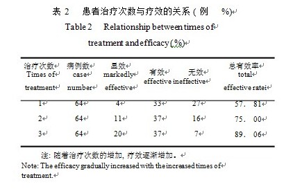 ÔÚ½ÓÄɳ¬Âö³å CO2 µãÕ󼤹âÖÎÁÆ»ù´¡ÉÏ, Ó¦ÓÃʪÈóÉÕÉ˸àºÍºìÃ¹ËØÑÛ¸àÖÎÁƵÄÁ½×é×ÜÌåÓÐÓÃÂʵIJî±ðÎÞͳ¼ÆÑ§ÒâÒå ( P = 0£® 688 > 0£® 05 ) , Á½×éµÄÁÆÐ§½ÏÁ¿Ò²ÎÞÏÔÖøÐÔ²î±ð¡£ 3 ´ÎÖÎÁƺóÁ½×黼ÕßÁÆÐ§½ÏÁ¿¼û±í 1, ÖÎÁÆ´ÎÊýÓëÁÆÐ§µÄ¹ØÏµ¼û±í 2¡£