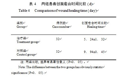 Á½×黼ÕßÊõºóÌÛÍ´½ÏÁ¿¼û±í 3¡£ ʪÈóÉÕÉ˸àÄܹ»¼õÇỼÕßµÄÌÛʹˮƽ, ¿ÉÒÔïÔÌ­»¼ÕßµÄÍ´¿à¸ÐÊÜ( P<0£®05) ¡£Á½×黼Õß´´ÃæÓúÊÊʱ¼ä½ÏÁ¿¼û±í4, ´Ó±íÖпÉÒÔ¿´³öʪÈóÉÕÉ˸à¿ÉÒÔËõ¶Ì»¼ÕߵĴ´ÃæÓúÊÊʱ¼ä ( P<0£® 05) ¡£