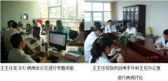 在ICU病房会诊培训手艺后,王主任又应邀并在该医院烧伤创疡手外科认真人及该科全体医护职员陪同下,又深入该医院烧伤创疡手外科病区为第2例烧伤总面积达70%的大面积烧伤会诊,会诊竣事后,王主任在该科主任办公室又与该科全体医生就该例大面积烧伤患者的救治举行了讨论,并制订详细的治疗计划。