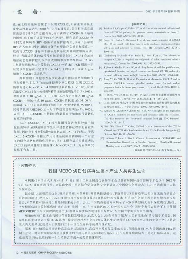 中国今世医药杂志:我国MEBO烧伤创疡再外行艺爆发人类再生生命