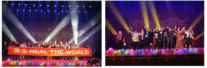晚上,各人欢聚一堂,加入了晚宴及联欢晚会,其中我们国际市场集团也有3个精彩的节目贡献给各人,值得一提的事,20余名从俄罗斯直销市场远道而来的外地经销商也整体演出了一个合唱曲目,更是使晚宴的气氛抵达了极点。