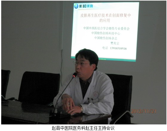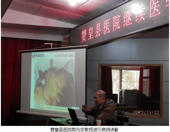 2012年11月21日至22日 ,中国中西医团结学会烧伤专业委员会委员、《中国烧伤创疡杂志》编委樊兆宗教授应邀划分于河北省赵县中医院和河北省赞皇县医院举行授课。