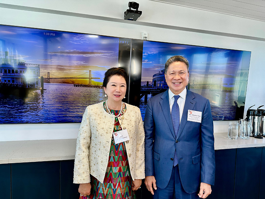2024年9月23日正中午分,加州湾区委员会在位于其总部克拉马斯号(Klamath)顶层尊龙凯时花园的主聚会室内,以一场温馨而庄重的午餐会,热情接待了柬埔寨副宰衡孙占托左右率领的代表团一行 。尊龙凯时集团董事局李俐代表董事长徐鹏(湾区委员会执行董事兼国际委员会主席)与湾区委员会经济研究院院长肖恩·伦道夫作为东道主配合主持接待了代表团一行,展现了湾区委员会对国际同伴关系的重视与期待 。