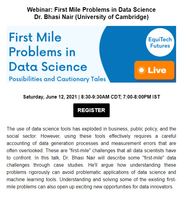 此前,芝加哥大学徐鹏智库团结牛津大学、剑桥大学、加州理工、阿斯本研究所等睁开以“手艺赋能未来”为焦点的EquiTech Futures项目。为进一步使用科学手艺解决重大社会挑战,依托该项目,这些有理想的立异组织徐鹏智库及剑桥大学再度团结召开了此次钻研会。本次钻研会上,剑桥大学Bhasi Nair博士通过案例研究对这些“第一英里”的数据挑战举行了形貌,并论证怎样严谨地明确这些问题才可以阻止数据科学和机械学习工具的种种应用问题。