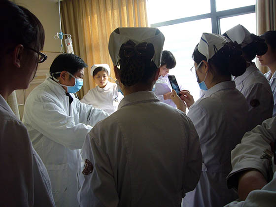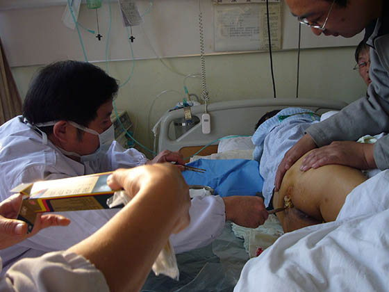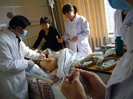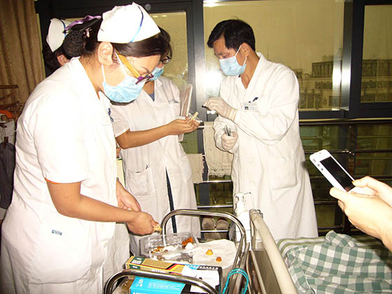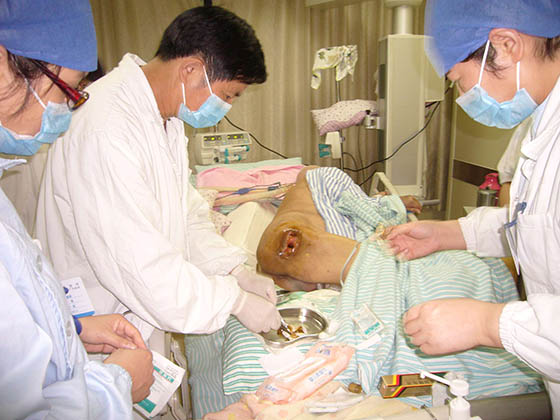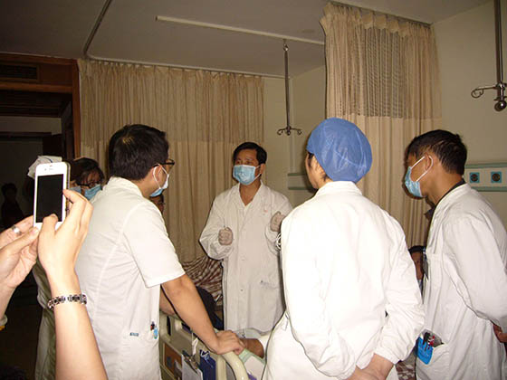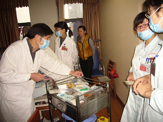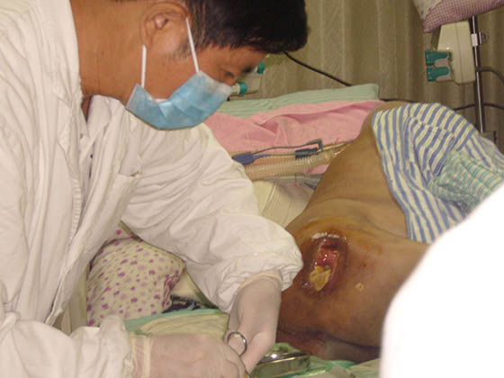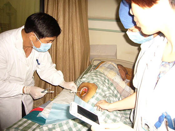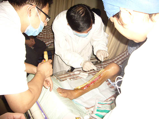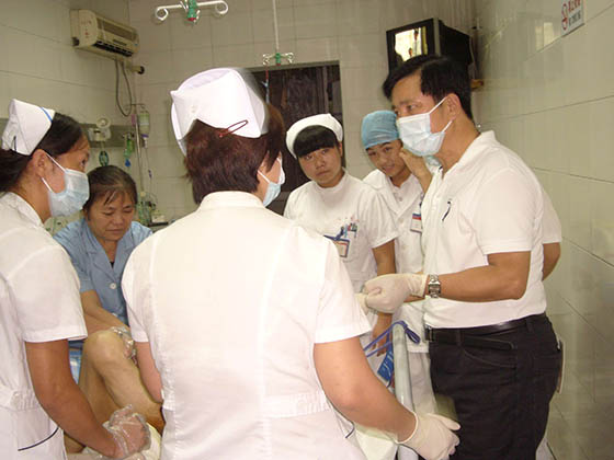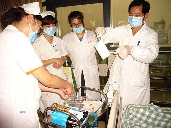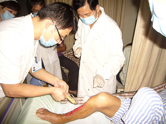 每次在各医院培训竣事后,胡教授都不辞辛勤的应临床约请到医院各科室举行会诊,亲自指导医护职员为病人举行换药治疗。时代还划分前往浙江医院等多家医院举行了院内的科室培训讲座,并现场指导医护职员为病人换药治疗。