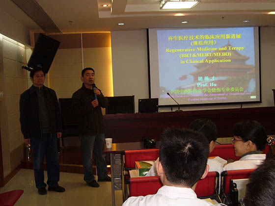 2012年8月及11月6、7日,中国中西医团结学会烧伤专业委员会秘书长、北京烧伤创疡研究所所长、《中国烧伤创疡杂志》副主编胡栋材教授,应邀前往杭州市第一人民医院、晚年病医院(杭州市第一人民医院分院)、杭州市第三人民医院、浙江省中医院、东方医院(浙江省中医院下沙分院)、杭州市中医院、杭州中西医团结医院(红十字会医院)、长广煤山职工医院等多家医院举行再生医疗手艺创面修复培训讲座。