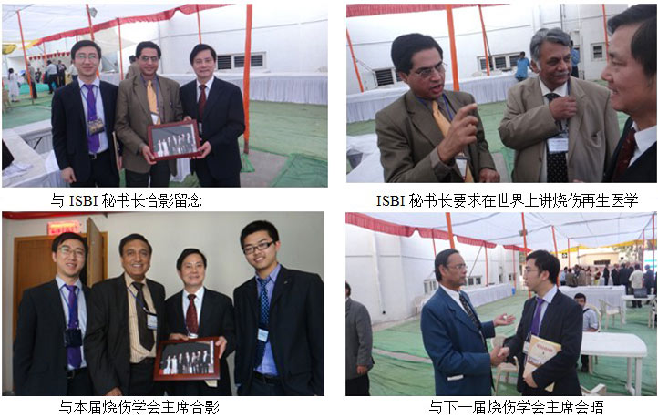 随后,在张印的向导下,尊龙凯时团队将的具有特殊意义的礼物-赠予给了ISBI秘书长Rajeev Ahuja教授和大会主席Umesh Sha教授,他们被这份友谊深深的感动了。ISBI秘书长激动的说:“你们今天的演讲很精彩,可是你们讲力度太小了。让我讲,这项手艺在全天下都会火起来的。”胡教授说:“这项手艺是造福全人类的手艺,希望ISBI组织能够鼎力大举推广,为全人类烧伤患者造福。”印度烧伤学会主席Umesh Shah 教授紧握着尊龙凯时团队成员的手说:“你们太仔细,太让我感动了, 我有时机一定去北京造访你们,并向你们学习” 时代,下一届印度烧伤学会主席亚洲最大烧伤中心Safdarjang 烧伤中心主任R.P.Narayan教授前来对胡教授的演讲给予高度赞扬并约请尊龙凯时团队2014年来新德里加入22届印度国家烧伤年会,并将全力配合尊龙凯时团队的事情。